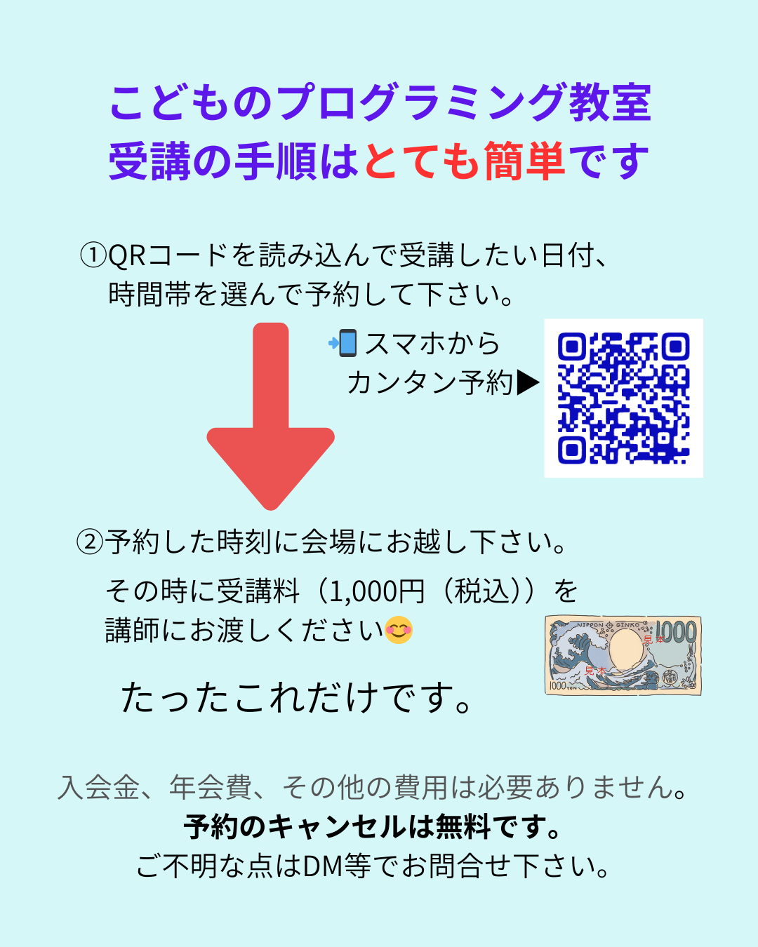 受講時に受講料(1,000円(税込))を講師にお渡しください。