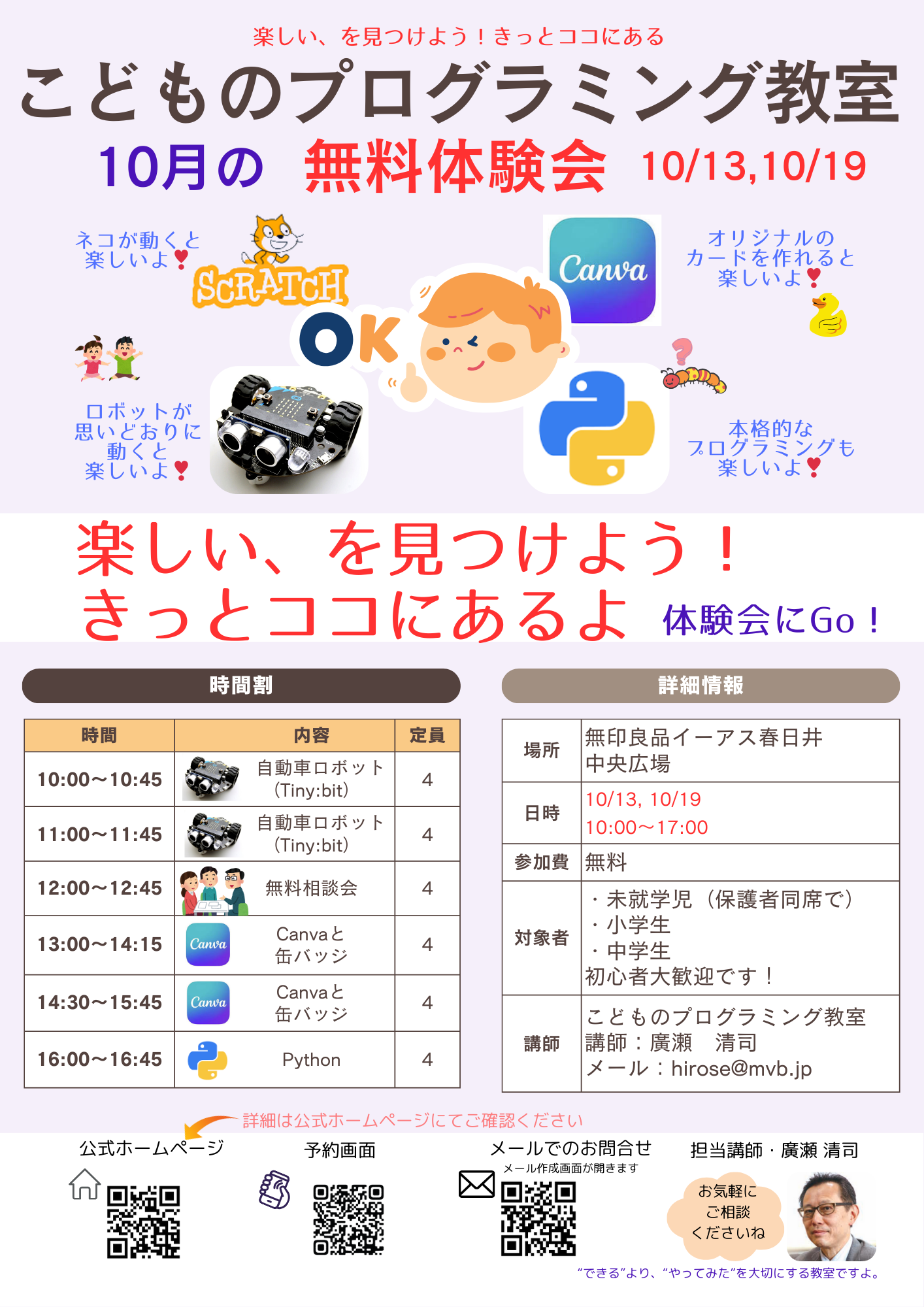 体験会の会場別にご案内しています。 ①高蔵寺公民館教室 体験会のご予約はこちらから 2025年10月以降の高蔵寺公民館教室での体験会は、通常講座の時間に実施します。 ご予約の際に「体験会希望」とお書き添えください。 本講座、10月以降の体験会のご予約はこちらから ②無印良品 イーアス春日井・中央広場 ご予約はこちらから